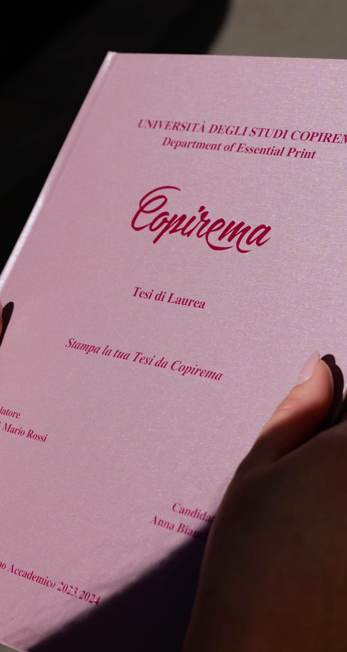 INVIA VIA EMAIL IL PDF DELLA TESI E IL FRONTESPIZIO A INFO@COPIREMA.IT E TI INVIEREMO IL COSTO DELLE STAMPE CHE POTRAI PAGARE CON PAYPAL O SAPISPAY